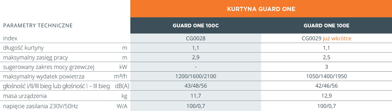 Kurtyna powietrzna GUARD ONE